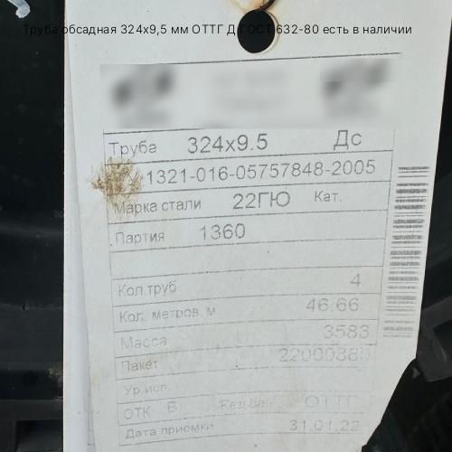 Труба обсадная 324х9,5 мм ОТТГ Д ГОСТ 632-80 есть в наличии